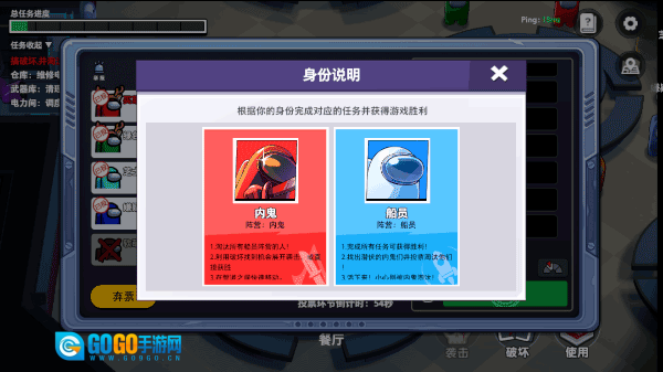 游戏规则:游戏的场景设定在一艘太空飞船上,玩家会被划分成两个阵营——船员阵营(属于好人方)与冒充者阵营(类似狼人杀里的狼人角色)。