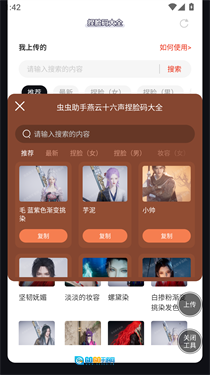 1、在本站并打开虫虫助手燕云十六声捏脸码大全