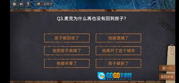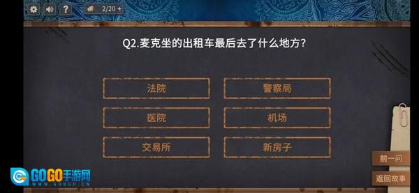 这时再看目的地选项,就能把机场和海底排除掉了,毕竟麦克并没有离开城市。剩下的两个选项问过之后,确定是警察局。