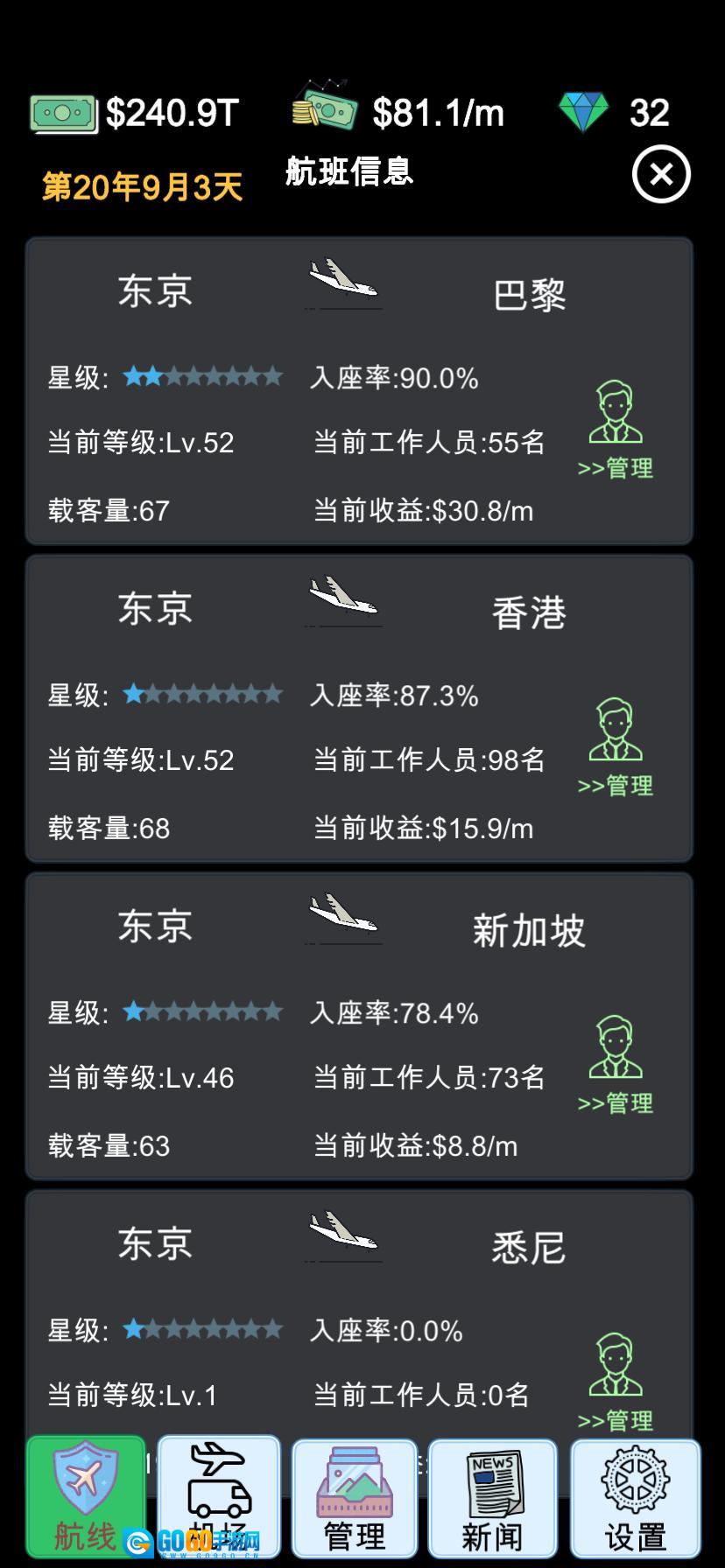 2、在游戏中你可以自由新建机场、新增航线,不过前提是你得拥有足够的现金流。