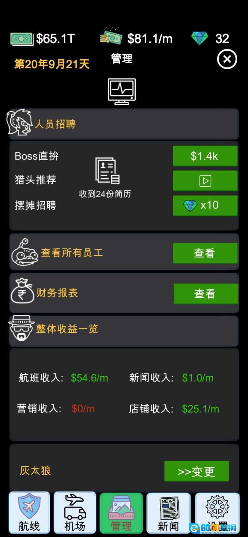 4、新建机场、开辟新航线、培育优秀员工,助力你的航空产业不断发展壮大。