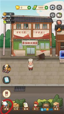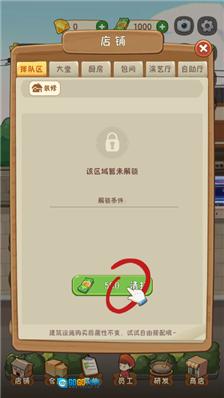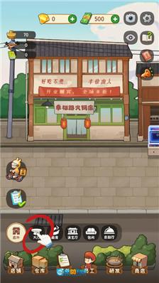 2、由于是新开业的店铺,我们得先对店铺进行清理,第一步是清扫排队区域,大家可以点击左下角的【店铺】按钮进入清扫界面。