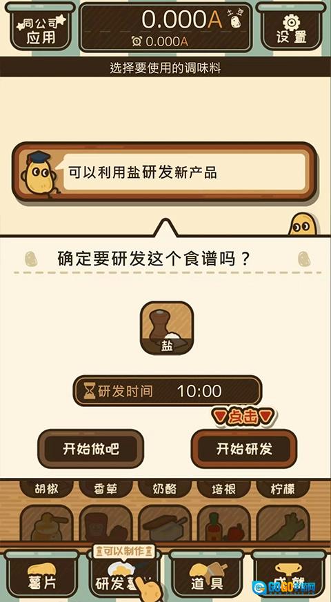 3、我们除了制作薯片,还需研发新的薯片产品,点击“研发薯片”按钮即可开展研发工作。
