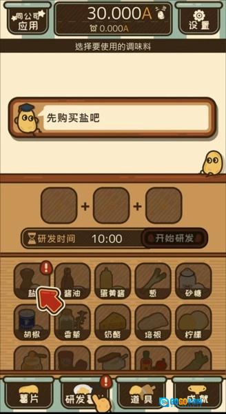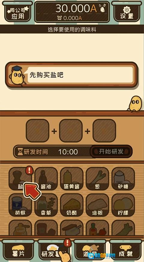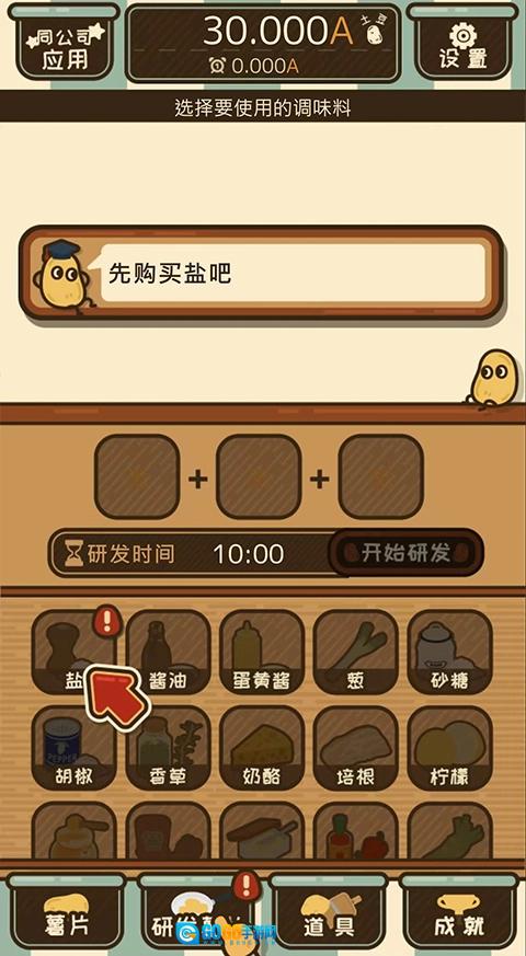 5、然后回到研发薯片的页面,然后点击盐开始研发;