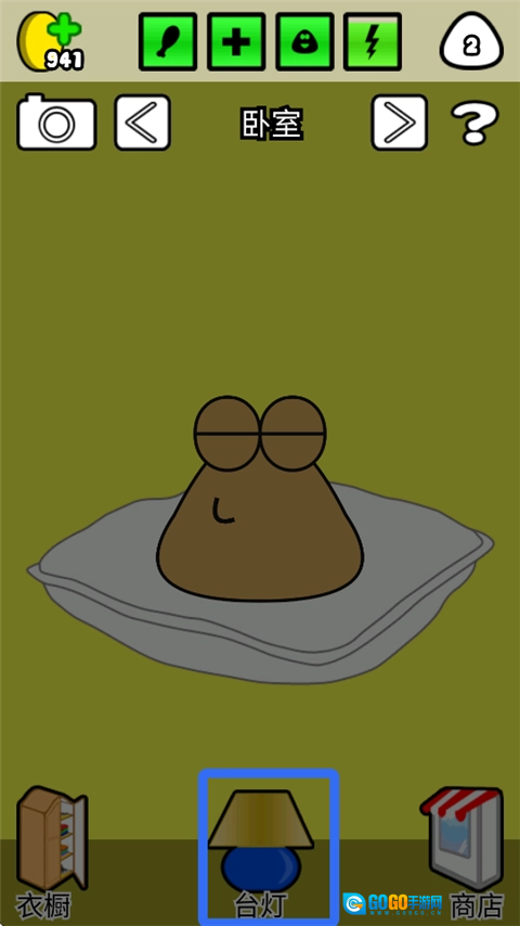 5、玩得累了的时候,走进卧室,点击台灯就能让pou进入睡眠状态。